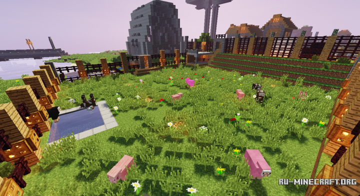 Довольно качественная карта - Mechanical Village, на которой вас ожидает просто совершенная деревня для жителей, она весьма сильно отличается от обычной. Она полностью была переработана, добавлено множество других построек, которые делают её более интересной для изучения, и просто обитания в ней.