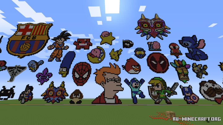 На карте Podcast Pixel Art вас ожидает просто огромная коллекция пиксель артов, автор которых провел не один день для их создания. Вашему вниманию будут представлены самые разные варианты, это и герои различных мультсериалов и видеоигр и просто различные интересные значки. Вам явно будет на что посмотреть на этой карте !