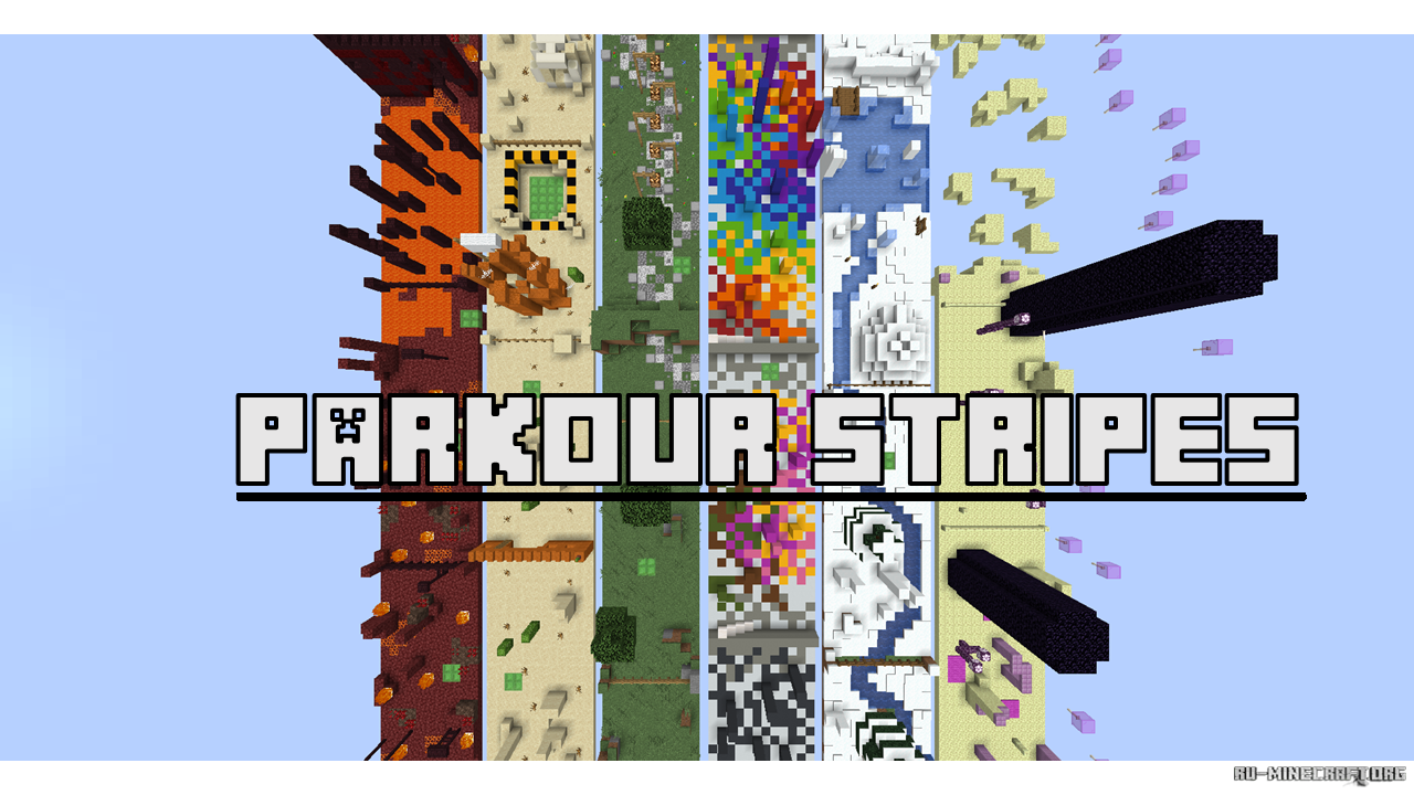 Если вы любите паркур приключения в майнкрафте, то карта под названием Parkour Stripes обязательно понравиться вам. Вашему вниманию будет представлено сразу шесть полосок паркура, где вы сможете испытать собственные навыки для прохождения. Чем дальше вы будете проходить, тем сложнее будет дальше - оцените...