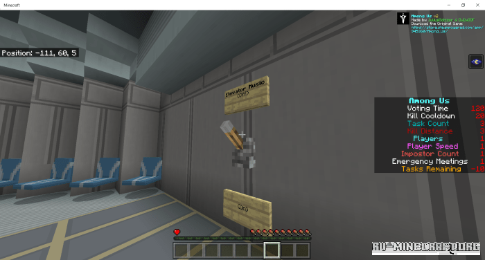 На карте под названием MCBE Among Us v2 для вашего Minecraft PE клиента вашей игры, позволит вам открыть для себя интересный геймплей в майнкрафте в стиле привычной игры Amoung Us. Собственно вы сможете устроить геймплей в майнкрафте в подобном стиле, и просто насладиться игровым процессом - оцените бесплатно !