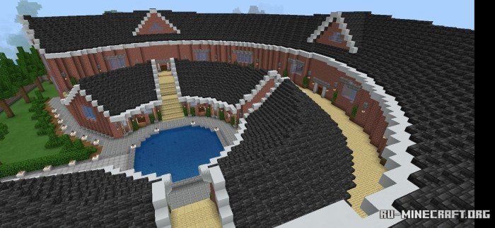 Замечательная карта Round Mansion для вашего Minecraft PE клиента вашей игры, можно сказать вашему вниманию будет представлена некая постройка, а именно некий особняк в очень оригинальной архитектурной особенности. Можно сказать это весьма интересный вариант для любителей подобных строений - оцените бесплатно.
