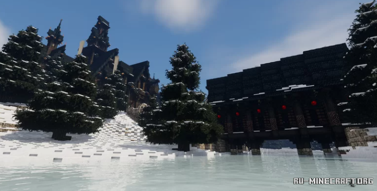 Замечательная карта под названием Kringlewood для вашей игры, именно на этой карте вы сможете словить Рождественский дух. Собственно целый замок украшенный к празднику. Это довольно отличный вариант, который понравиться любителям интересных вариантов в майнкрафте, вам непременно сможет понравиться - оцените.
