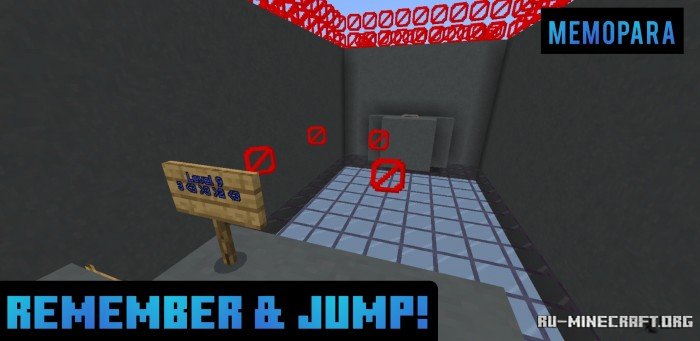 На карте под названием Memopara - Memory Parkour вы сможете открыть для себя интересный вариант приключений паркура, где вам необходимо будет запомнить препятствия, а после уже следовать по этому пути. Довольно интересный вариант, где у вас появляется дополнительная сложность. Скачивайте, и открывайте отличный вариант !