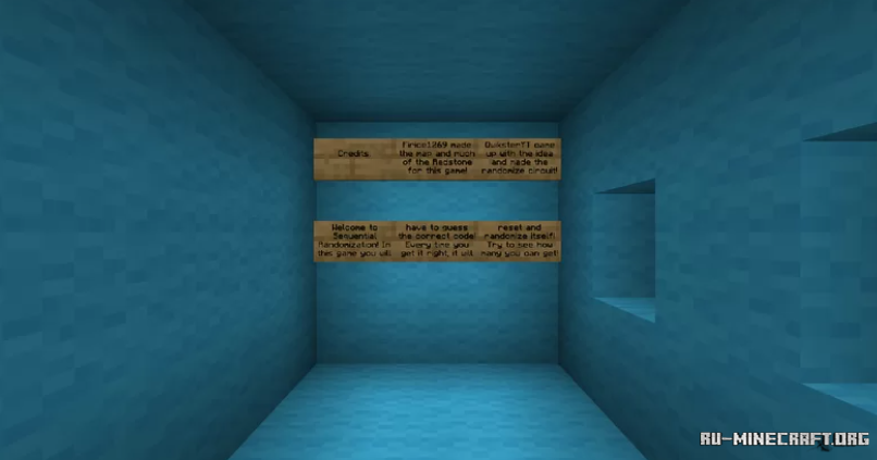 Неплохая карта под названием Sequential Randomization вы сможете открыть для себя интересный вариант кодового замка с помощью редстоуна. Весьма интересный вариант такого механизма в собственной игре. Скачивайте, и открывайте для себя в майнкрафте такое решение, вам обязательно понравиться данная карта !