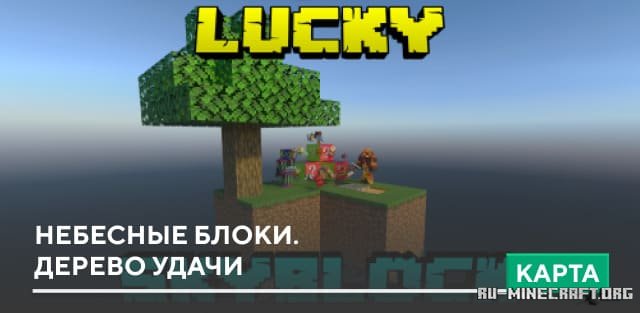 Небесные блоки. Дерево удачи - это весьма интересная карта для вашего Minecraft PE клиента вашей игры, вы сможете открыть для себя интересный вариант скайблока, где вам необходимо будет выживать на острове, открыть счастливые блоки. Очень неплохое приключение для вас, вы сможете насладиться игровым процессом в собственной игре.