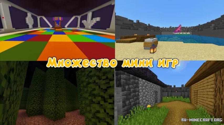 Замечательная карта Смешарики 2.0.0 для вашего MCPE клиента вашей игры. Вы можете открыть интересный вариант локаций из знаменитого мультика Смешарики, как на СНГ пространстве, так и за рубежом. Вас ожидают различные мини-игры, локации и просто интересный геймплей в майнкрафте - оцените бесплатно данную карту.