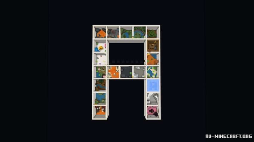 Замечательная карта Паркур А для вашего MCPE клиента вашей игры, именно на этой карте вы сможете открыть замечательное приключение, где уровни расположены в виде буквы А. Вас ожидает порядка 20 разнообразных уровней, это настоящее испытание подобного формата - вам непременно понравиться подобная карта.