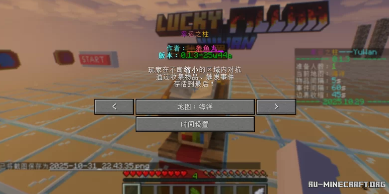 Замечательная карта под названием Lucky PIllar by fishing886, вы сможете открыть для себя интересный вариант приключения для многопользовательского контента, вы сможете открыть неплохой вариант приключений, где игроки будут случайно спавниться на неких колонах. Вы будете сражаться до последнего, и просто испытывать себя.