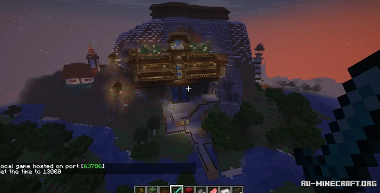 На карте под названием Crown of the Mountain – Medieval Spawn Hub для вашего игрового клиента, вы сможете открыть для себя интересный вариант некого интересного домика, который в свою очередь расположен в подвешенном состоянии на горе. Неплохая карта, позволит вам открыть такую невероятную постройку !