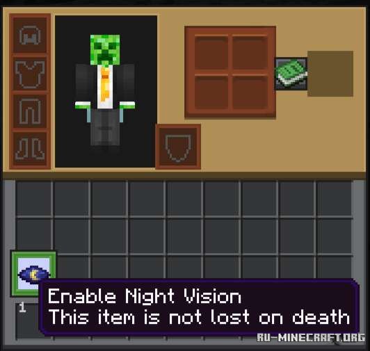 Модификация Рюкзаки от BONY162 для вашего Minecraft PE клиента вашей игры, вы сможете открыть специальный предмет, который в свою очередь позволит вам включать моментальное ночное зрение, и будет работать очень удобным образом. Скачивайте, и открывайте отличное дополнение в собственной игре - оцените мод.