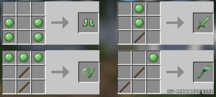 Представляем вашему вниманию отличное обновление Полезная Слизь для вашего Minecraft PE клиента вашей игры, вы сможете открыть для себя возможность использовать слизь для создания снаряжения. Само снаряжение будет обладать определенными уникальными свойствами, вам непременно понравиться данное улучшение.
