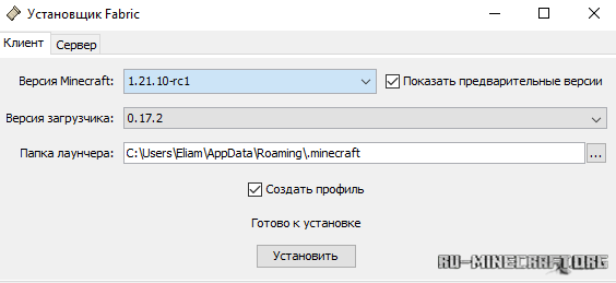 Скачать Fabric RC1 для Minecraft 1.21.10