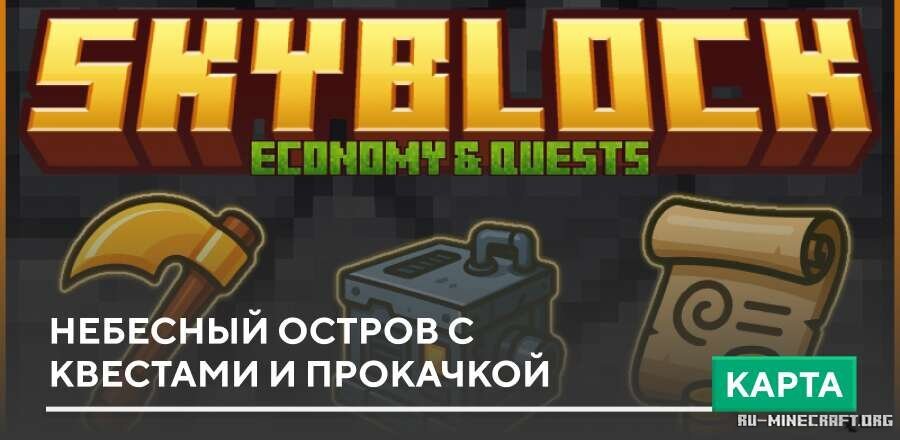 Хотите открыть для себя оригинальную карту для комфортного и интересного выживания ? Небесный остров с квестами и прокачкой - это карте, где в свою очередь вас ожидает интересный вариант некого острова в стилистике скайблок...