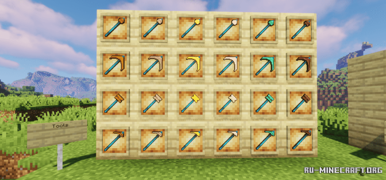 Представляем вашему вниманию отличный пакет текстур RPG PVP Swords and Tools, который в свою очередь позволит вам преобразить привычное снаряжение, а именно - кирки, мотыги, топоры и мечи в довольно реалистичном RPG стиле. Вы сможете насладиться игровым процессом, и открыть такие визуальные обновления в собственной игре.