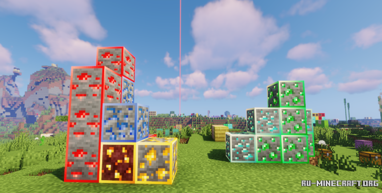 Представляем вашему вниманию замечательный пакет текстур More Visible Ores, который в свою очередь добавляет видимость руды в майнкрафте, которая теперь будет отображаться в виде светящегося объекта, и может быть точно обнаружена в условиях плохой видимости. Скачивайте, и открывайте отличный пакет в майнкрафте.